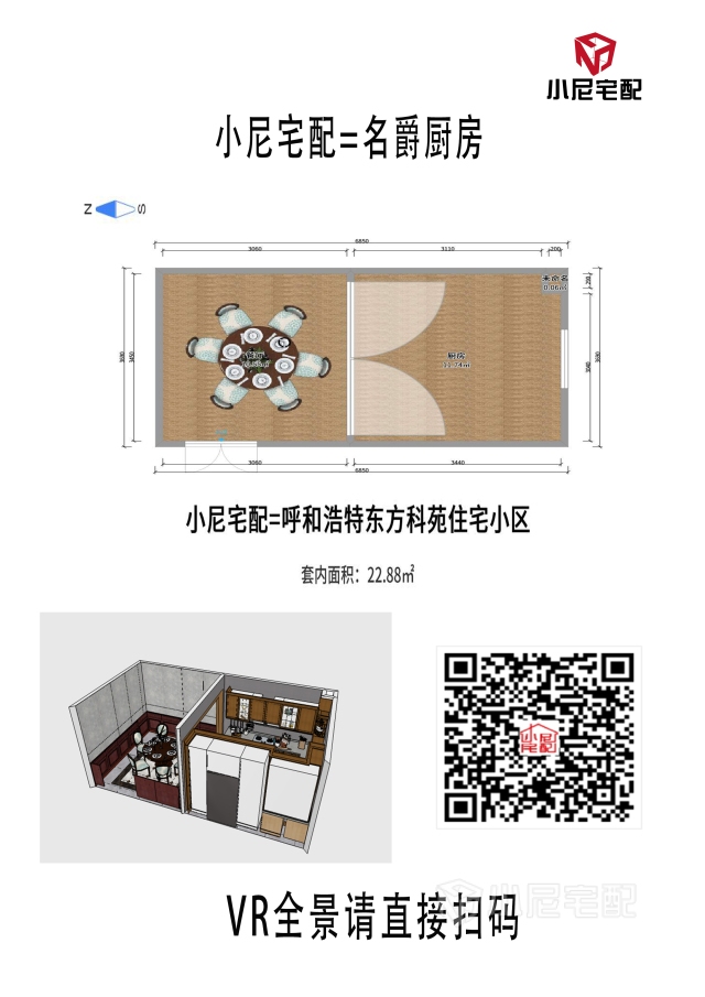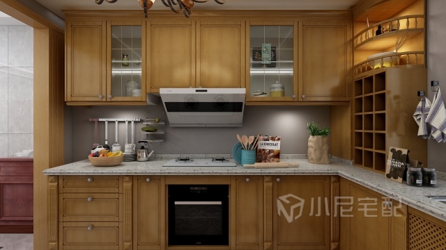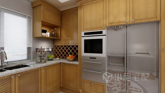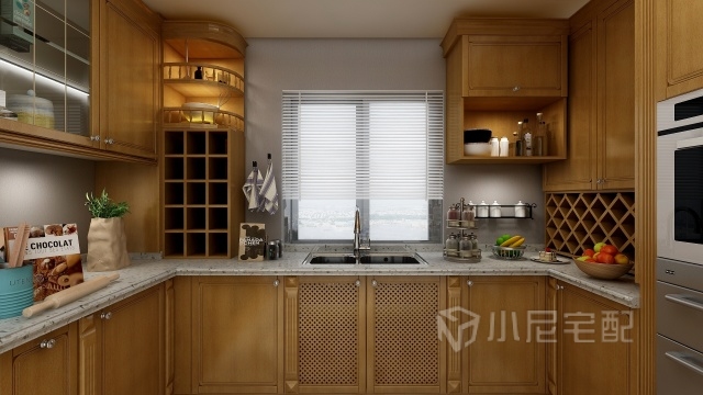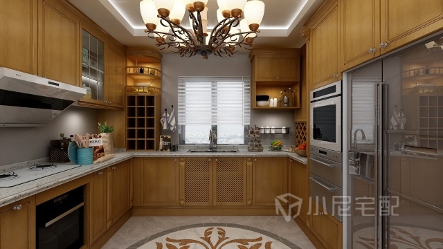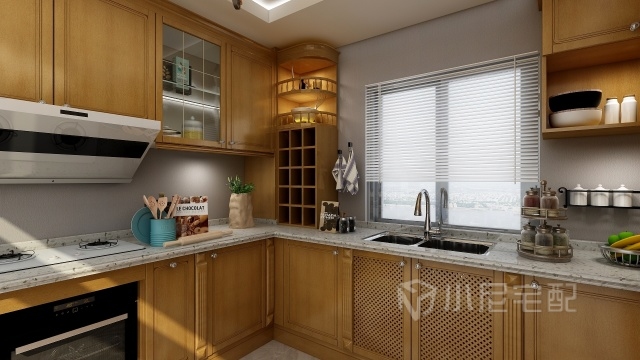 U型廚房布置,活動(dòng)空間充足,三角動(dòng)線明確