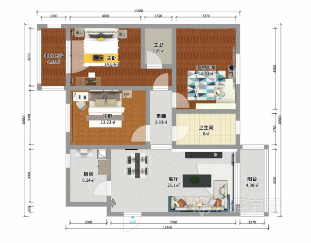 96㎡#兩室兩廳一衛(wèi)#混搭