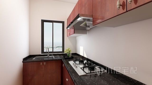 對(duì)比強(qiáng)烈的紅黑配色給整個(gè)廚房區(qū)域帶來(lái)了不一樣的新鮮感。