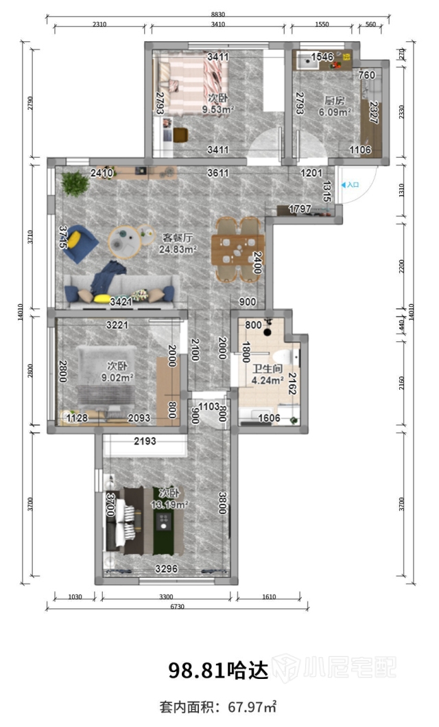 98.81㎡#三室一廳一衛(wèi)#現(xiàn)代