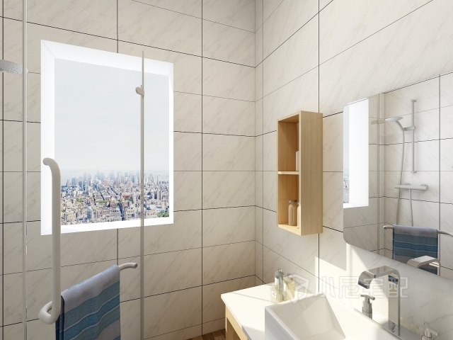衛(wèi)生間雖然小,盡量集成了洗浴房,讓空間利用更加高,而且達(dá)到了客戶需求的干濕分離