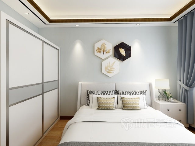 次臥淺藍(lán)色壁紙,清新素雅