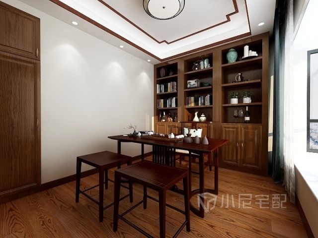 書房兼茶室 知己三兩座,茶香飄四溢。對(duì)話閑情事,偷得靜半日。