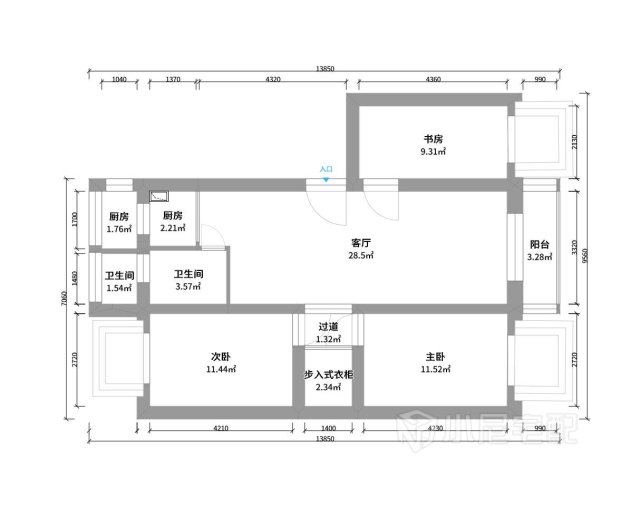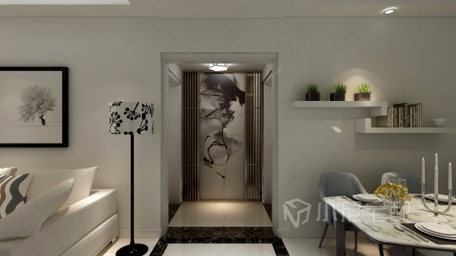 進(jìn)門正對(duì)衣帽間隱形門,隱形門采用裝飾畫裝飾,藝術(shù)感很強(qiáng)