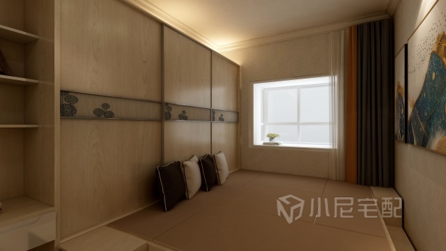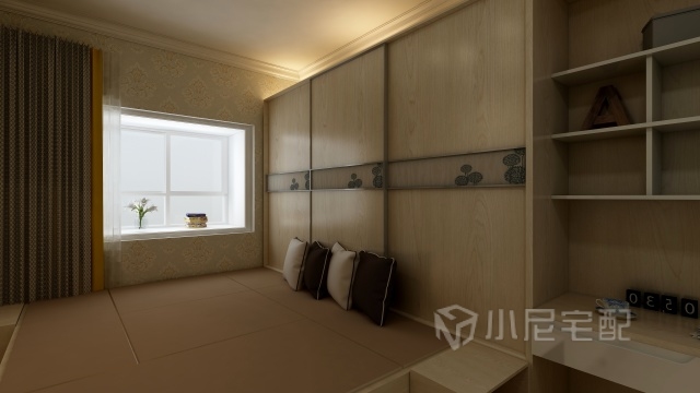 主臥室全屋定制榻榻米,選用暖色調(diào)為主