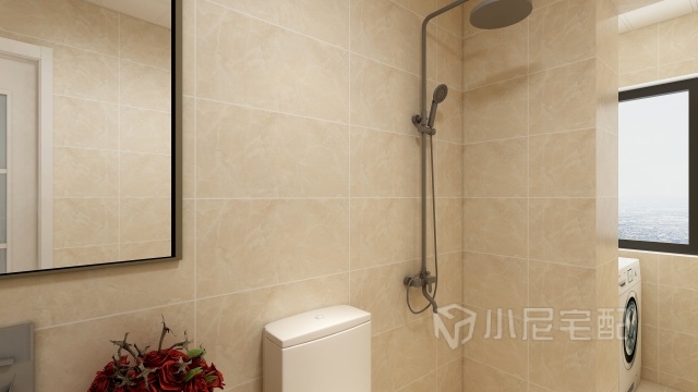衛(wèi)生間采用暖色墻磚,顯得溫暖