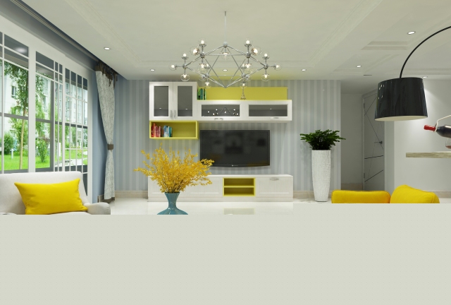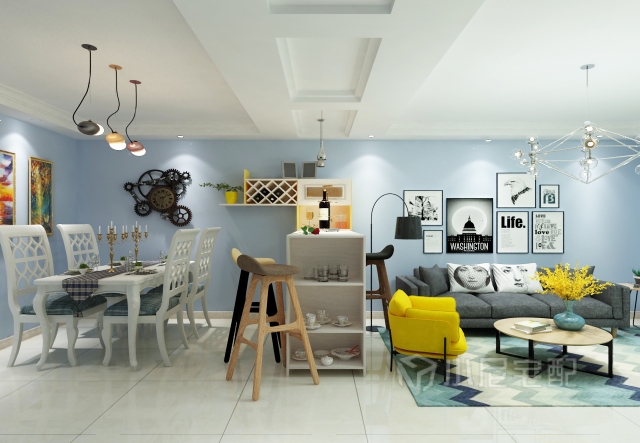 個人早起作品相當(dāng)滿意的效果,客餐廳的藍(lán)墻業(yè)主非常喜歡??筒蛷d是用3d做的燈光效果完美。