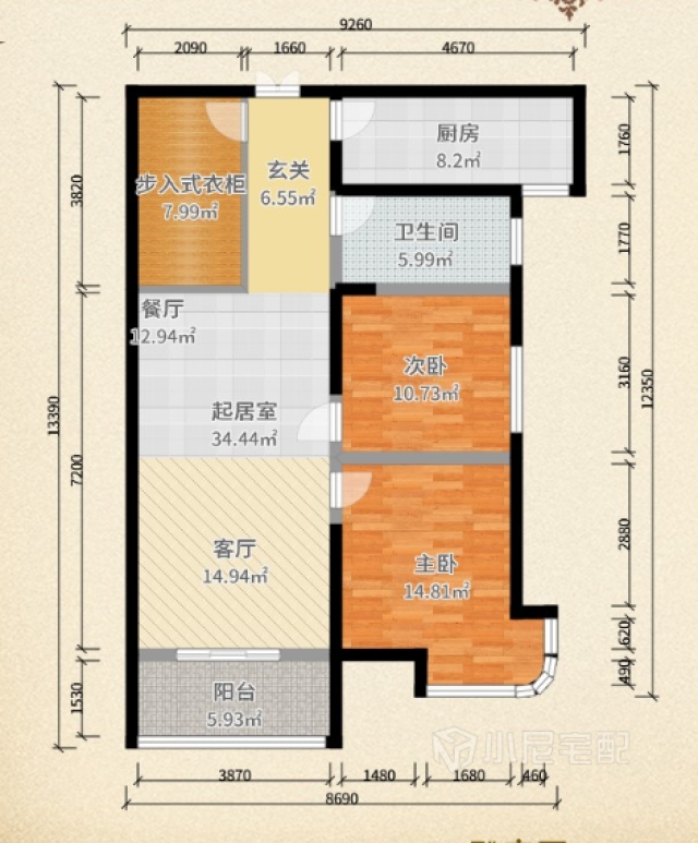 97.67㎡#兩室兩廳一衛(wèi)#混搭