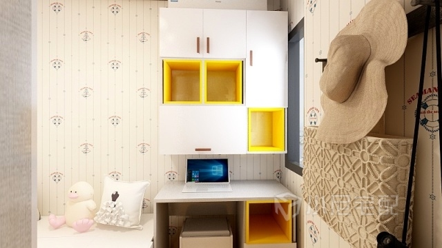 書桌套了檸檬黃活躍一下孩子的空間增資添色。