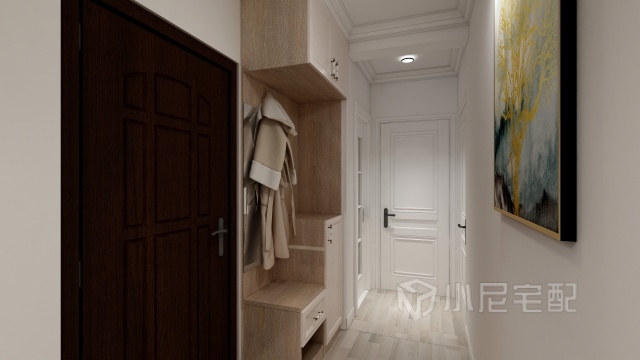 門口放置鞋柜既把門廳處缺角補(bǔ)平,又增大儲物空間