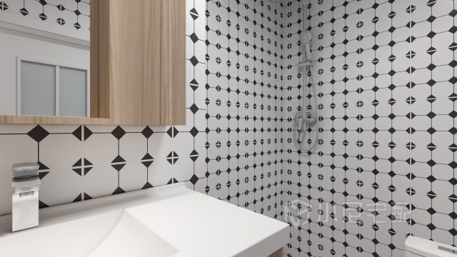 客衛(wèi)生間采用黑白格子墻磚,跳躍感十足