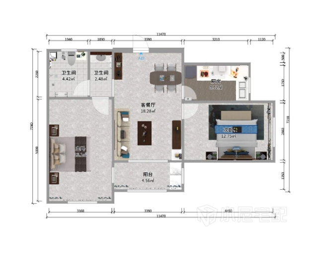 主臥主色調(diào)深,選擇家具套白,不沉悶