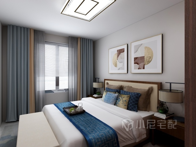 次臥藍(lán)色調(diào)點(diǎn)綴