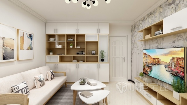 電視墻采用白樺樹背景壁紙,配合北歐風(fēng)格家具,簡約不簡單