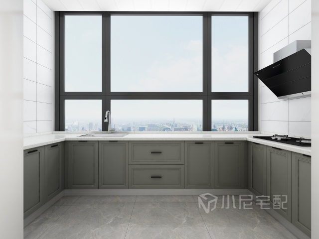 廚房空間是采用白色+木色來搭配裝飾,墻、地面選用白色淺紋大理石瓷磚進行鋪貼,櫥柜則是淺木色,搭配白色斑點人造石臺面很是美觀、簡潔。不過廚房中的電器都是采用的黑色調(diào)顏色,恰到好處的嵌入式設計在廚房內(nèi),整體上看一切從簡設計,以簡約功能化為主,注重空間結(jié)構(gòu)布局,強調(diào)廚房的明亮與簡潔。這種設計充分體現(xiàn)了現(xiàn)代生活的簡約、實用。