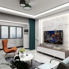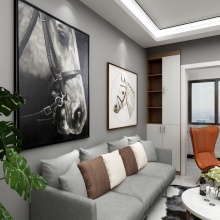 濃郁的高雅感營造出精致的空間,明暗色調和諧共處,其中點綴的少許亮色是點睛之筆。環(huán)顧四周之時,軟裝的搭配相得益彰,電視背景墻大理石的輝煌感更使整個空間大放異彩,是吸睛之處。