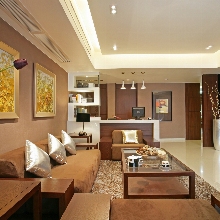 本方案為現(xiàn)代簡約風(fēng)格,整體設(shè)計以暖色調(diào)為主深色為輔營造溫馨舒適的居住環(huán)境??蛷d現(xiàn)代布藝沙發(fā),休閑舒適,內(nèi)嵌式反光吊頂,以暖黃色光線渲染溫馨舒適的休閑氛圍,餐廳與客廳相鄰,增加空間通透感,休閑舒適。家裝家具一體價:14.5萬。
