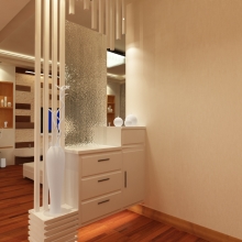 背景:比較年輕的3家之口。業(yè)主要求簡潔,大方,有創(chuàng)意。以實用為主要目的。要環(huán)保。 創(chuàng)意:以松木板為主要板材,營造出一種自然溫馨的感覺。 材料:松木板為基礎(chǔ)板材,外加石膏板,乳膠漆等。