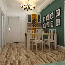 設計風格偏北歐,色彩搭配明快舒適,暗綠色和明黃色的搭配有耳目一新的感覺,同時也提升了空間的層次感