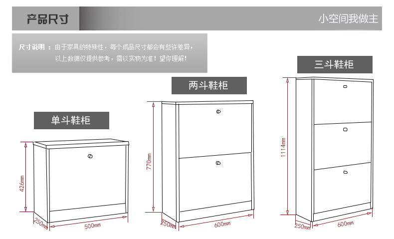| 尺寸說(shuō)明 | 由于家具是組裝產(chǎn)品,每個(gè)成品尺寸都有可能存在細(xì)微差異,需以實(shí)物為準(zhǔn)。 |