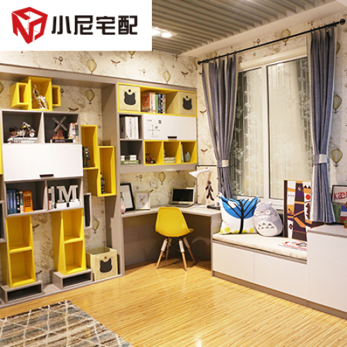 | 細節(jié)描述 | 超酷的變形金剛組合,使整個兒童房空間充滿了童趣,在裝飾空間的同時也起到了收納的作用。轉(zhuǎn)角書桌滿足了小朋友的學習空間,弧形臺面不僅美觀,又避免了小孩的磕磕碰碰。坐臺和書桌結(jié)合在一起,家長可以在旁邊陪同學習,還可以與孩子互動玩樂。 |