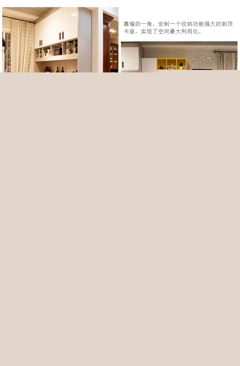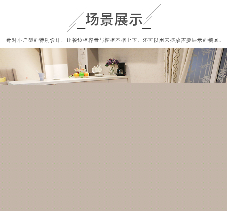 | 細(xì)節(jié)描述 | 餐廳定制了大容量餐邊柜,風(fēng)格完整統(tǒng)一,在狹小的空間用組合餐柜餐臺形成盡可能大的收納力,空間最大利用化 。針對小戶型的特別設(shè)計(jì),讓餐邊柜容量與櫥柜不相上下,還可以用來擺放需要展示的餐具。坐臺可以做三個人,下方和背面有一個收納的空間。餐臺的收納功能強(qiáng)大。 |