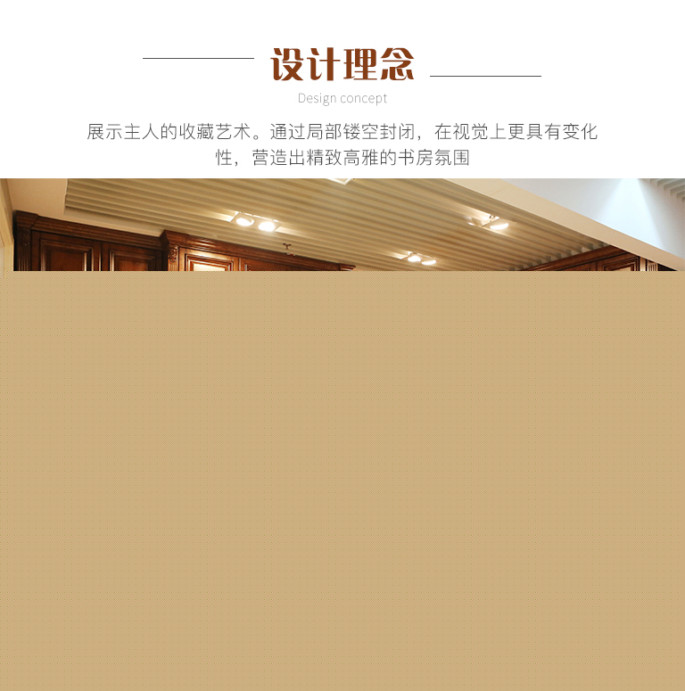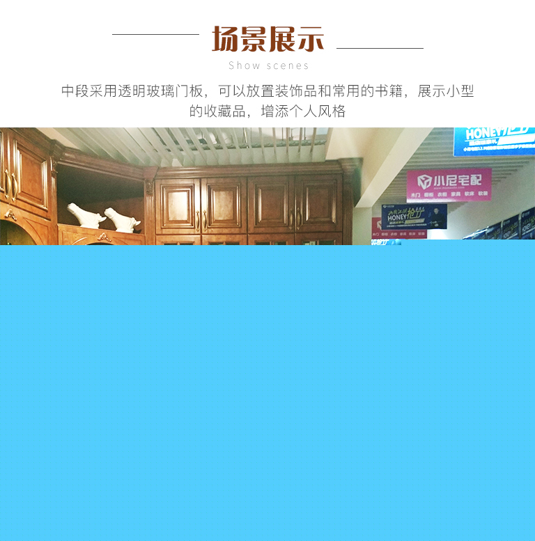 | 細(xì)節(jié)描述 | 書房中段采用透明玻璃門板,可以放置裝飾品和常用的書籍,展示小型的收藏品,增添個(gè)人風(fēng)格。下方用門板柜子,將雜物完整收納干凈。兩側(cè)的開放柜可以展示自己的收藏品和藝術(shù)畫,展示功能強(qiáng)大。局部開放,局部鏤空封閉,在視覺(jué)上更具有變化性,營(yíng)造出精致高雅的書房氛圍。 |
