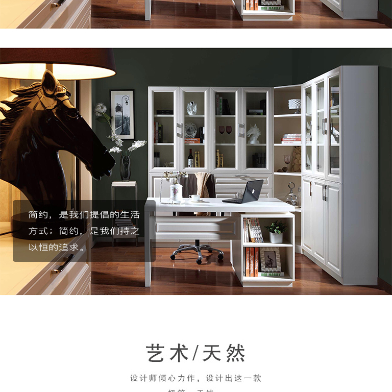 | 細(xì)節(jié)描述 | 展示主人的收藏藝術(shù)。通過局部鏤空封閉,在視覺上更具有變化性,營造出精致高雅的書房氛圍。 |