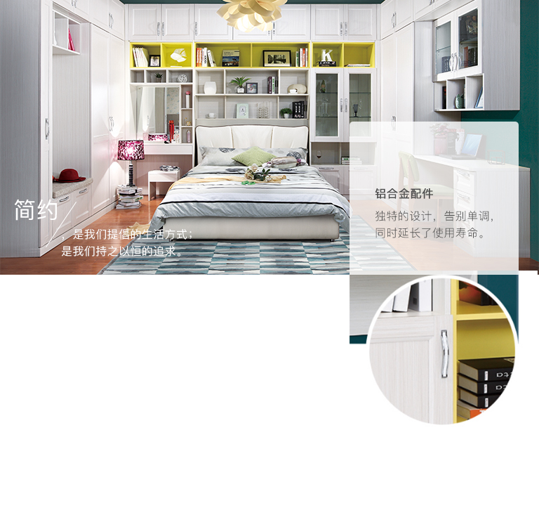 | 細節(jié)描述 | 此空間為蘇香桐套檸檬黃的定制臥房 |