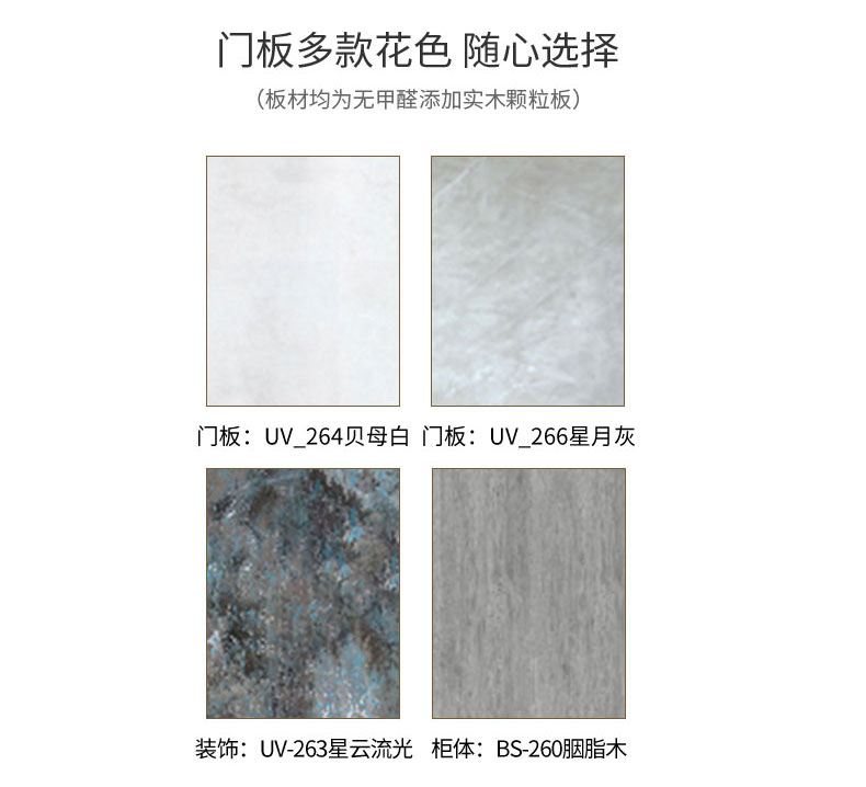 UV_264貝母白、UV_266星月灰、UV-263星云流光、BS-260胭脂木