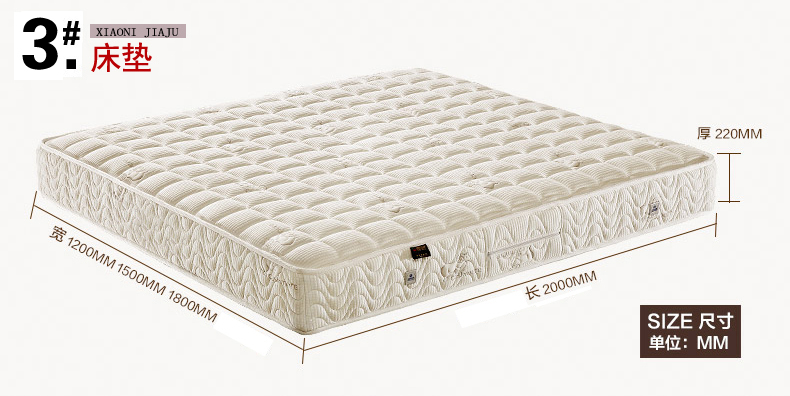| 規(guī)格 | 雙人床:1800*2000*200mm 床頭柜:558*401*448mm 衣柜:2316*633*2775mm 梳妝臺:596*400*1430mm 梳妝凳:400*250*470mm |