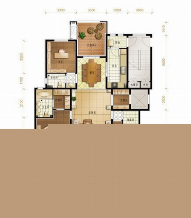 棕色系沙發(fā)休閑舒適,茶幾耐臟易清洗,增加室內(nèi)出空間,實(shí)用度高,現(xiàn)代吊燈暖色光線烘托溫馨舒適的休息氛圍,簡化線條,柔和舒適,讓人在這靜謐的環(huán)境中放松身心。