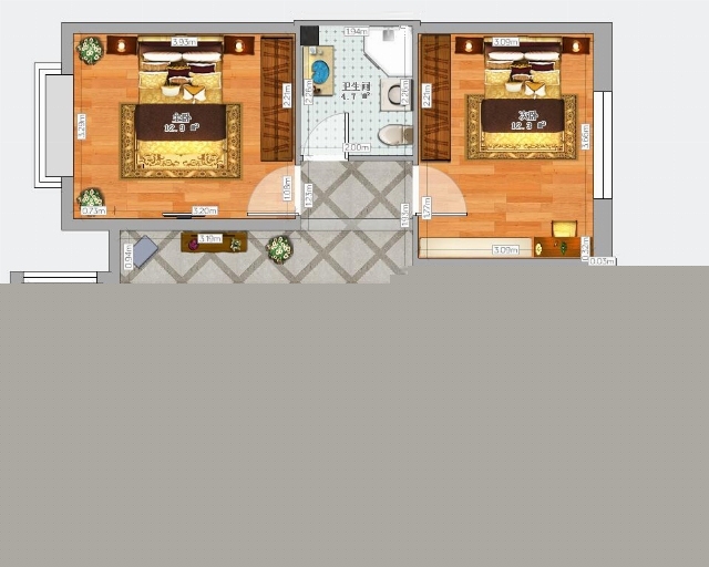 次臥淺色調(diào),配合小尼的床、書桌、衣柜,臥室兼具書房功能,整體美觀大方,且不失溫馨浪漫之感。